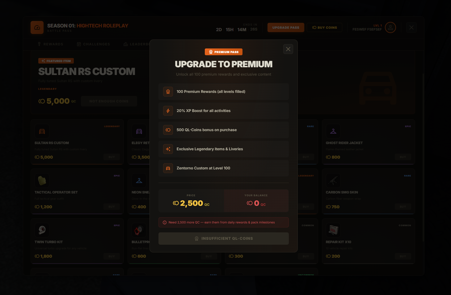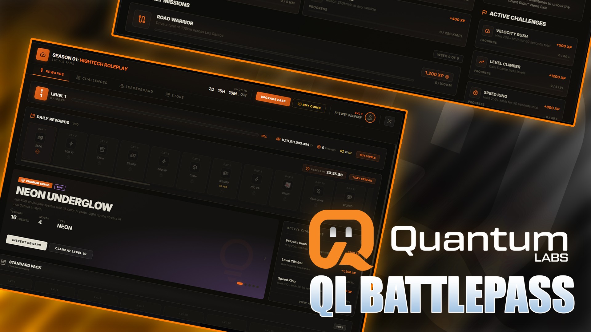 QL BattlePass ek powerful system hai jo aapke FiveM server me XP, missions aur rewards add karta hai. Isse players daily active rehte hain aur server grow karta hai.
